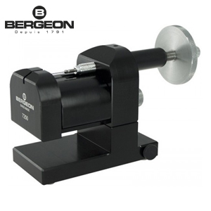 Professioneller Stiftausschläger mit Spindel und höhenverstellbarer Bandauflage für ein exaktes Austreiben und Einpressen der Stifte ohne Beschädigungen am Band zu hinterlassen. Kein Hämmern nötig! Seitlich befindet sich ein Aufbewahrungsfach mit Deckel für Ausstoßstifte. Swiss-Made.