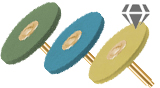 Imprägnierte Diamantpolierer der neuesten Generation zum Glätten, Vor- und Hochglanzpolieren von HSS und Hartmetall. Bestens geeignet zum schnellen polieren von Graviersticheln. Die Stützscheibe unter dem Polierrad sorgt für die gewünschte Stabilisierung.