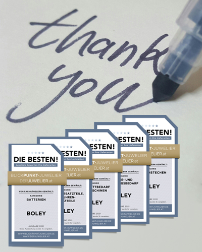 420 retailers, jewellers, goldsmiths and watchmakers voted in the trade magazine "Blickpunkt Juwelier" with 12,650 answers and chose the best suppliers 2020/2021 from 39 categories.