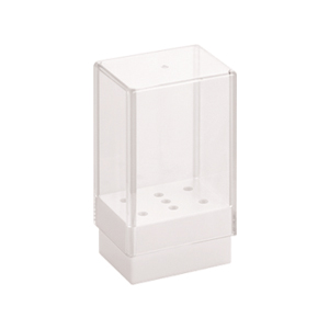 Practical square plastic stand with transparent lid for storing brushes, polishing discs, cutters, drills, etc.