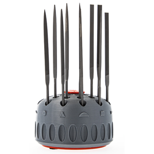 The organiser for needle files is designed to hold up to 36 of your needle files clearly arranged. The needle files can be clearly sorted by cut thanks to the three rows with 12 holes each. The rotatable 360° base plate means you always have access to the file you want.