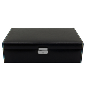 High quality watch collector box suitable for 10 watches. Leather look handcrafted, interior made of fine synthetics with lockable lock.