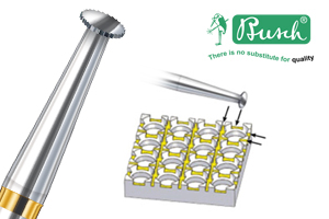 After preparation of the correct gem stone position of the pavé setting the gaps can be cut crosswise by these new circular saws. It will rest only the claws for finally setting gem stones. The special gearing of the circular saws inables you to master nice and deep mill-cut into platinum, titanium, stainless steel as well as into gold, silver and their alloys.