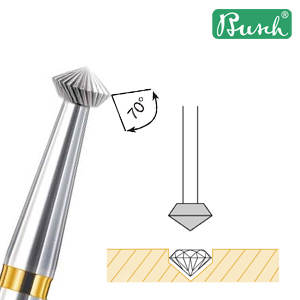 singly Hart bur Previous product1/15Next product nameHart burfigureFig. 446AUHead-Ø0.90 mmShaft-Ø2.35 mmVersiondouble cone 70°item No.562809