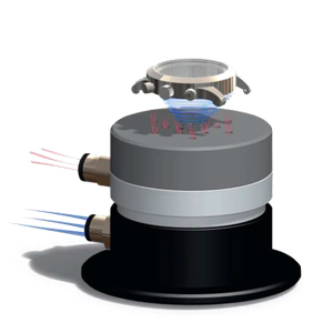 You only need to press on the table to detach and vacuum the dust. When the table is lifted, a vacuum is created so that the centre section of the housing or the floor can be vacuumed. Ending the stroke activates the compressed air while the vacuum remains active, creating a pneumatic vortex inside your part to be cleaned. The dust is detached and extracted via the larger openings. This method is not suitable for dust containing adhesive or greasy substances.