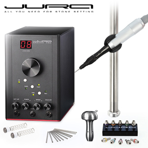 JURA's newly developed ground-breaking pneumatic engraving system with integrated micromotor - a revolutionary all-in-one tool that redefines precision and efficiency in diamond setting and hand engraving.