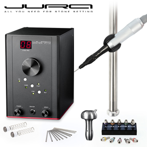JURA's newly developed ground-breaking pneumatic engraving system with integrated micromotor - a revolutionary all-in-one tool that redefines precision and efficiency in diamond setting and hand engraving.