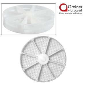 Cleaning basket made of plastic with Ø 80mm and 8 separations. Suitable for Greiner Vibrograf ACS900 / ACS921.