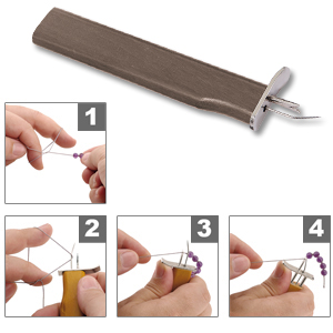 Very practical handcraft tool in order to knot professionally and quickly natural silk. Automatic tension spring for fixing the knot, good execution - with a wooden handle.