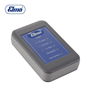 The pager is suitable for Elmasolvex VA watch cleaning machine. He informs you of the actual remaining time ot the watch cleaning program. In case of low batterie a beeps remind you of changing batteries.