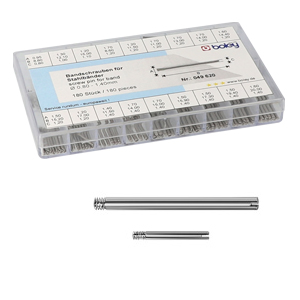 Assortment of the most common shortening screws for steel straps in various lengths and designs.