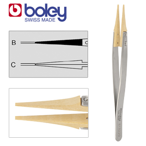 Precision tweezers Swiss-made with the best processing quality. Specially manufactured tweezers made of anti-magnetic steel with replaceable wooden tips form F. Ideal for hands alignment, as well as for scratch-sensitive or highly polished components to avoid damage and pressure marks.