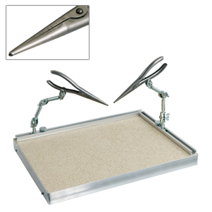 The soldering plate with two holding tongs is a basic version. The plate has an aluminium frame