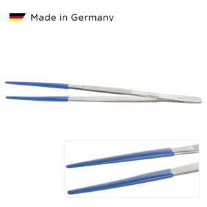 Tweezers in extra-long design made of steel with coaed tips. Ideal for the use in the ultrasonic or with the steam cleaning. Made in Germany.