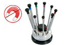 AntimagneticBontech "Standard-Antimag" ball-bearing screwdriver, with coloured ring. Subgroups selection on revolving base nameVersiontypemanufacturecontentsitem No.screwdriverAssortmentrotating baseBoley9 pieces510927 screwdrivers singly nameblade widthcolourmanufacturePUitem No.screwdriver0.60 mmPinkBoley1 piece510955screwdriver0.80 mmyellowBoley1 piece510956screwdriver1.00 mmblackBoley1 piece510957screwdriver1.20 mmredBoley1 piece510958screwdriver1.40 mmGreyBoley1 piece510959screwdriver1.60 mmVioletBoley1 piece510960screwdriver2.00 mmGreenBoley1 piece510962screwdriver2.50 mmBlueBoley1 piece510963screwdriver3.00 mmBrownBoley1 piece510964 replacement blades nameblade widthshapematerialPUitem No.replacement blades0.60 mmV-Formantimagnetisch3 pieces510985replacement blades0.80 mmV-Formantimagnetisch3 pieces510986replacement blades1.00 mmV-Formantimagnetisch3 pieces510987replacement blades1.20 mmV-Formantimagnetisch3 pieces510988replacement blades1.40 mmV-Formantimagnetisch3 pieces510989replacement blades1.60 mmV-Formantimagnetisch3 pieces510990replacement blades2.00 mmV-Formantimagnetisch3 pieces510992replacement blades2.50 mmV-Formantimagnetisch3 pieces510993replacement blades3.00 mmV-Formantimagnetisch3 pieces510994 fixing screws nameVersionthread ØmaterialPUitem No.fixing screwscylinder screwsM2x1.5stainless steel10 pieces510975