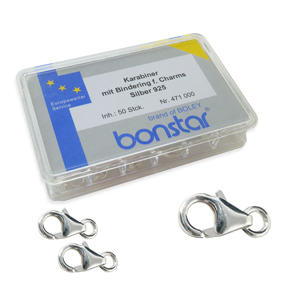 Sortiment Karabiner für Charms mit eingehängtem Bindering.