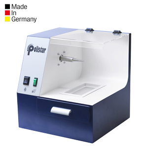 The “Polistar” polishing machine is a compact polishing unit with two power levels. The “Polistar” has space-saving dimensions and an attractive all-metal housing. The polishing motor is maintenance-free, the filters are easy to clean with an exchangeable polishing tip for all commercially available grinding and polishing attachments.