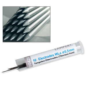 Due to the good service life and equally good strike characteristics, for many years now we have been using tungsten electrodes, which contain not only a range of mixed oxides but also an increased portion of lanthanum oxide (La2O3).