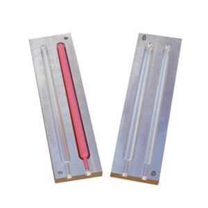 Precision aluminum mold for the production of wax middle trunks. Adjustment points for exact positioning of the two halves.
