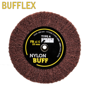 Bufflex matting brushes made of aluminum oxide for an even surface structure. Round grain for fine satining and matting of metals. Also suitable for freshening, cleaning old metals, as well as for processing after pickling.