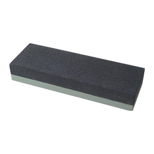 Silicone-carbid grindstone for sharpening of widia and hardmetal, e.g. for knives, blades, cuttes, gravers and engraving tools. Universal stone for dry and wet grinding, useable on both sides.