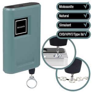 • Reliably identifies colorless diamonds and distinguishes them from CVD/HPHT lab-grown diamonds, moissanites, and common simulants such as glass, sapphire, and cubic zirconia (CZ).