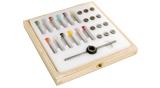 thread-cuttingTap, tap-holder, tapping die. Subgroups selections nameshapeVersionfrom - tocontentsitem No.tapping toolwatchmakerAssortment0.40-1.4049 pieces514960tapping toolwatchmakerAssortment1.00-3.0034 pieces514966 tube extractor set for extracting crown and puhser tubes. nameVersioncontentsitem No.extractor-setfor tubes and pusher tubes4-parts567990 thread tapper single namegradientthread ØPUitem No.thread tapper0.0750.303 pieces569030thread tapper0.1000.403 pieces569040thread tapper0.1250.503 pieces569050thread tapper0.1500.603 pieces569060thread tapper0.1750.703 pieces569070thread tapper0.2000.803 pieces569080thread tapper0.2250.903 pieces569090thread tapper0.2501.003 pieces569100thread tapper0.2501.103 pieces569110thread tapper0.2501,203 pieces569120thread tapper0.2501,303 pieces569130thread tapper0.3001.403 pieces569140thread tapper0.3001,503 pieces569150thread tapper0.3001,603 pieces569160thread tapper0.3501,803 pieces569180thread tapper0.3502.003 pieces569200 thread tapper-sets Consisting of taper tap, second tap and finishing tap namegradientthread Øcontentsitem No.thread tapper0.251.00set of three567910thread tapper0.251,20set of three567912thread tapper0.301.40set of three567914thread tapper0.351.70set of three567917thread tapper0.402.00set of three567920thread tapper0.402.30set of three567923thread tapper0.452.50set of three567925thread tapper0.452.60set of three567926thread tapper0.503.00set of three567930thread tapper0.603.50set of three567935thread tapper0.704.00set of three567940thread tapper0.805.00set of three567950thread tapper0.351,60set of three567916 thread tapper for pushers Thread tappers with fine thread, of HSS. For pressers or crown tubes. namegradientthread ØVersionitem No.thread tapper0.202.00HSS567986thread tapper0.202.30HSS567981thread tapper0.202.50HSS567985thread tapper0.252.50HSS567980thread tapper0.202,75HSS567982thread tapper0.353.00HSS567984 tapping die singly namethread Øgradientoutside-Øitem No.thread-cutting die0.400.1008.0 mm559040thread-cutting die0.500.1258.0 mm559050thread-cutting die0.600.1508.0 mm559060thread-cutting die0.700.1758.0 mm559070thread-cutting die0.800.2008.0 mm559080thread-cutting die0.900.2258.0 mm559090thread-cutting die1.000.2508.0 mm559100thread-cutting die1.100.2508.0 mm559110thread-cutting die1,200.2508.0 mm559120thread-cutting die1,300.2508.0 mm559130thread-cutting die1.400.2508.0 mm559140thread-cutting die1.000.25016.0 mm558010thread-cutting die1,200.25016.0 mm558012thread-cutting die1.400.30016.0 mm558014thread-cutting die1.700.35016.0 mm558017thread-cutting die2.000,40016.0 mm558020thread-cutting die2.300,40016.0 mm558023thread-cutting die2.600,45016.0 mm558026thread-cutting die3.000,50016.0 mm558030thread-cutting die3.500,60020.0 mm558035thread-cutting die5.000,80020.0 mm558050 thread tapper holder namespanTotal lengthitem No.drill-holderM1 bis M8130mm514965 tapping die holder namemanufactureoutside-ØVersionitem No.die holdersBergeon8 mmwith lever arms514932die holdersBoley16 mmwith lever arms514940 cutting wax nameVersionitem No.cutting waxSaw and cutting wax511425 Beeswax nameVersioncontentsitem No.BeeswaxLubricant30g511423 cutting and drilling oil nameVersionitem No.cutting oildrilling oil511424