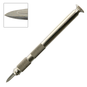 Triangular hollow scraperThree-sided hollow scraper with brass nickel-plated handel and double-sided tip for fine work. With practical rotary knob for simplified working.
