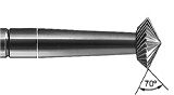 Double-cone bur 70° of tool steel for precise setting work. The working angle of 70° permits an optimum approach for perfectly-fitting settings to take precious and semi-precious stones.