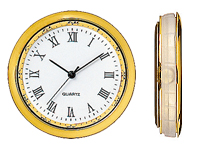 miniQuartz-mini separate movements in various designs. All movements are fully assembled and are designed to be fitted in. Subgroups model MA Gold- or nickel-plated case, white dial with Roman numerals. Simple to install with flexible rubber fixing ring.Installation: 23,5 - 24,5 mmInstallation depth: min. 5.5 mm nameoutside-Øglass edgeClock-facemodelitem No.insertion movements mini25,2mmyellowRomanMA105030insertion movements mini25,2mmwhiteRomanMA105032 Model BM Gold- or nickel-plated case, white dial with Roman or Arabic numerals. Simple to install with flexible rubber fixing ring.Installation: 34,5 - 36,5 mmInstallation depth: min. 6.5 mm nameoutside-Øglass edgeClock-facemodelitem No.insertion movements mini36,5mmyellowRomanBM105040insertion movements mini36,5mmwhiteRomanBM105042insertion movements mini36,5mmyellowArabicBM105044 model MC Gold- or nickel-plated case, white dial with Arabic numerals. Simple to install with flexible rubber fixing ring.Installation: 46,0 - 47,0 mmInstallation depth: min. 7.5 mm nameoutside-Øglass edgeClock-facemodelitem No.insertion movements mini50,0mmyellowArabicMC105035insertion movements mini50,0mmwhiteArabicMC105037