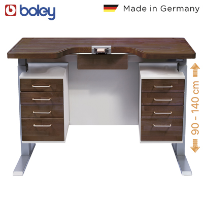 The new Flexbo workbenches 3.0 are of excellent quality and high functionality. The robust 4cm thick beech wood table top and a sturdy table base combine power and elegance in one. The Goldsmiths workbenches are supplied with two drawer columns to four drawers each, incl. electrical height adjustment.