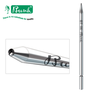 Beading tool made of hardened steel with optimally shaped high-gloss calotte and rounded circumferential edge. Shaft with predetermined breaking point, so that the beading tool can be shortened in length. Made in Germany.