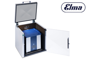 The new Elma Mutebox guarantees low-noise cleaning. Its quiet fan and optimal insulation make working with ultrasonic equipment a pleasant, health-friendly and quiet experience, whether for cleaning or sample preparation. In addition, the fan extracts condensation water and vapours to the rear. Noise levels are reduced by up to 85 % with the Elma Mutebox (i.e. by a further 30 % compared to the previous model). The interior lighting and glass door let you keep an eye on the cleaning process at all times. Two independent access points ensure that the items being cleaned and the ultrasonic unit are always easily accessible. The Mutebox, which we manufacture in-house, is made of high-quality steel and is easy to clean, thus also ensuring hygienic operation.