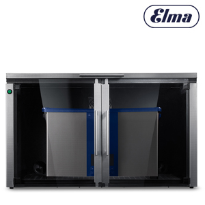 The new Elma Mutebox guarantees low-noise cleaning. Its quiet fan and optimal insulation make working with ultrasonic equipment a pleasant, health-friendly and quiet experience, whether for cleaning or sample preparation. In addition, the fan extracts condensation water and vapours to the rear. Noise levels are reduced by up to 85 % with the Elma Mutebox (i.e. by a further 30 % compared to the previous model). The interior lighting and glass door let you keep an eye on the cleaning process at all times. Two independent access points ensure that the items being cleaned and the ultrasonic unit are always easily accessible. The Mutebox, which we manufacture in-house, is made of high-quality steel and is easy to clean, thus also ensuring hygienic operation.
