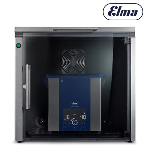 The new Elma Mutebox guarantees low-noise cleaning. Its quiet fan and optimal insulation make working with ultrasonic equipment a pleasant, health-friendly and quiet experience, whether for cleaning or sample preparation. In addition, the fan extracts condensation water and vapours to the rear. Noise levels are reduced by up to 85 % with the Elma Mutebox (i.e. by a further 30 % compared to the previous model). The interior lighting and glass door let you keep an eye on the cleaning process at all times. Two independent access points ensure that the items being cleaned and the ultrasonic unit are always easily accessible. The Mutebox, which we manufacture in-house, is made of high-quality steel and is easy to clean, thus also ensuring hygienic operation.