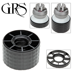 Assortment of plastic vice holders for GRS microblock ball vice, consisting of five partitions. Ideal work-aid for a quick adjustment of the working height witout any risk for the stability of the vice ball.