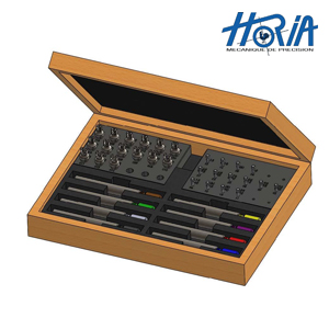 Extensive assortment of spindles with different coloured turning heads, as well as different extractors and tips in a practical storage box.
