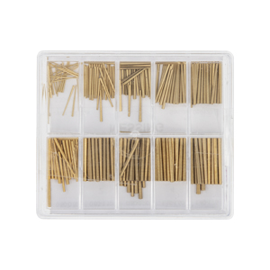 Conical taper pins, brass. Available measuring 0.40 x 1.80 mm.