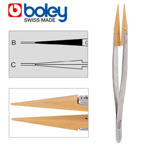 Precision tweezers in best Swiss manufacture quality. Specially manufactured tweezers from antimagnetic steel with exchangeable wooden tips for scratch-sensitive components. Ideal for working with sensible workpieces, e.g. electronic sparepieces in order to prevent scratches and damages.