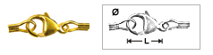 for wire cablesThese machine-made, punched or pressed lobster clasps are flat, with two end tubes completely finished for fine strings and nylons. Special feature: Straight eye with two end tubes Cylinder Ø 0,95mm Subgroups namel.alloytypePUitem No.Trigger Clasps13,0 mmS 925/-rounded1470006 namel.alloytypePUitem No.Trigger Clasps13,0 mmsilver gold-platedrounded1470306