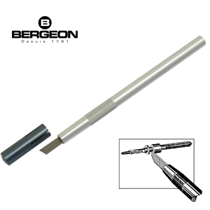 Groove turning graver made of WIDIA with metal handle in Swiss quality. Facon turning graver for turning the grooves in winding shafts etc..