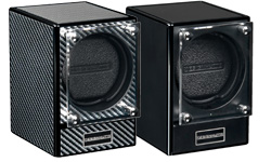 The new version of the watch winder has a new drive technology and five ball bearings. Four individually programmable Piccolo watch winders can be supplied with power via a single power supply unit without the need for any wiring between them (induction).
