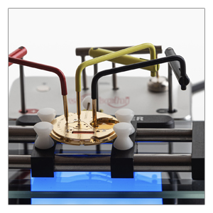 This compact measuring device is connected to the display unit via a USB interface. With its freely configurable keys and rotary knobs, three practical contact brackets and the ingenious watch movement holder, testing is trouble-free. And thanks to the optional dummy battery, the watch is quick and easy to connect to the measuring device.
