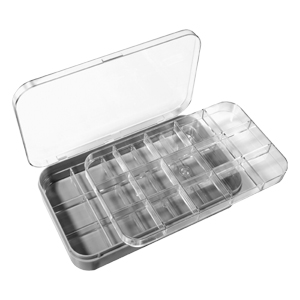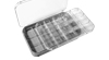 Practical assortment cases with clear hinged lid and two transparent levels with each 15 subdivisions.