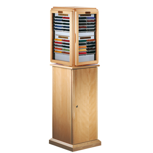Base unit made of solid wood with lockable door front to accommodate an additional 310 straps. Suitable for display Verona.