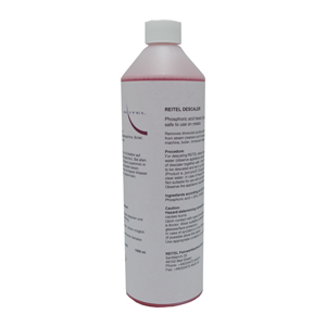 The Reitel descaler with phosphoric acid and metal protection effortlessly removes all limescale deposits on hot water devices such as steam jets and other devices.