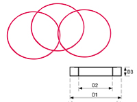 Round gaskets of special plastic (red) for cases designed so that the gasket clings to the base of the case.