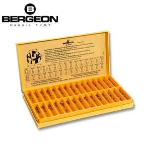 Brass bushings assortment "Bergeon-System" suitable for alarm clocks, clocks and Regulators in practical storage box.