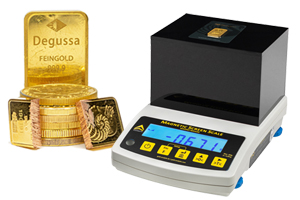But also many kinds of forging silver, as well as forgings of platinum or palladium can be discovered. Particularly convenient: the testing samples don't need to be taken out of its plastic blisters, plastic films or capsules (when they are not extraordinarily thick). That means that also small investment ingots that are firmly welded can be examined fast and with high certainty. Even jewellery can be tested regarding the often used tungsten carbide cores. You'll obtain the magnetic scales in a noble and robust aluminium carry case. Purchase the original from us - the proven and reliable solution to testing gold.