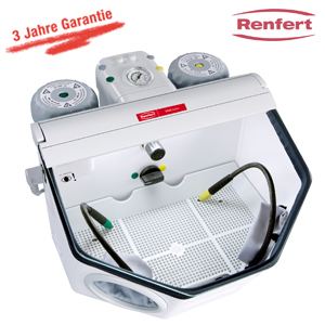 Compact top quality fine sandblaster with two blaster modules which enable the use of 25-70 µm and 70-250 µm abrasives.
